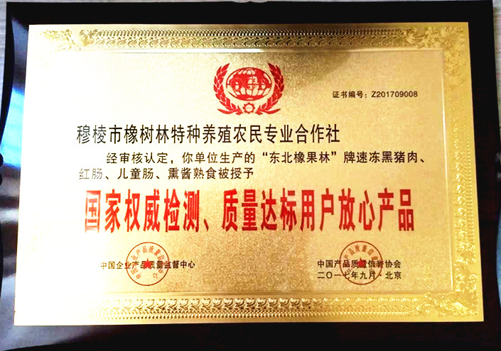 “东北橡果林”牌相关产品被授予国家权威检测、质量达标用户放心产品