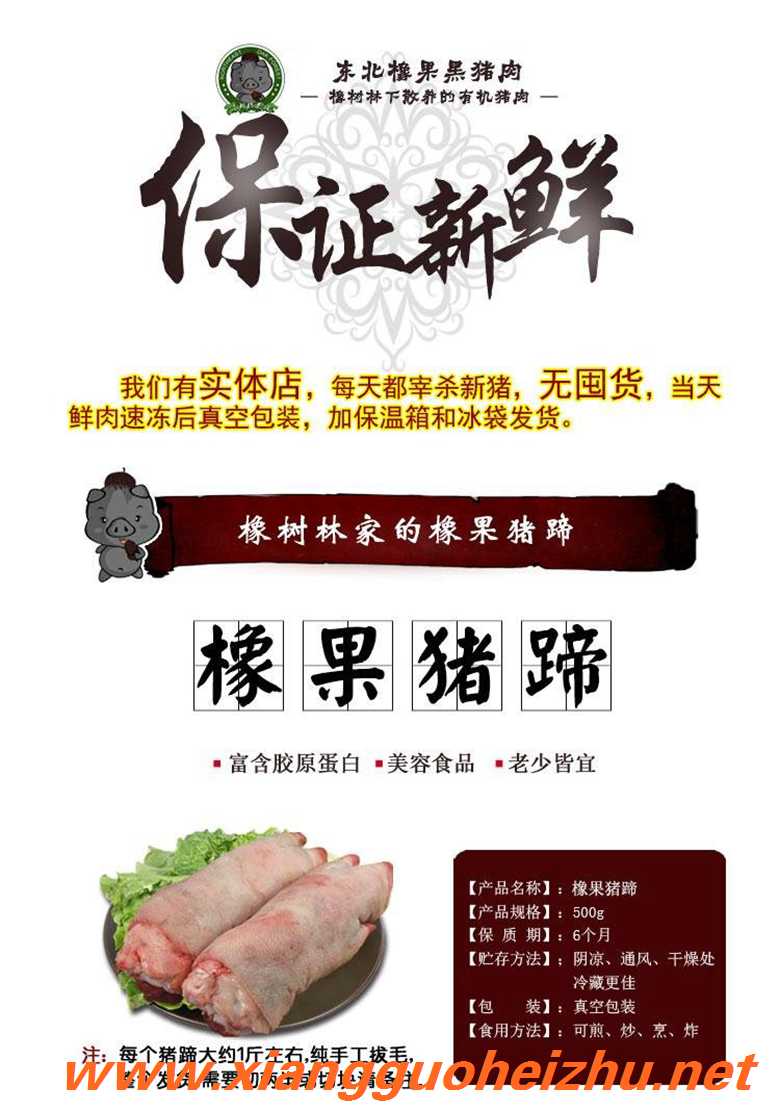 【猪蹄子500g手工拔毛】橡果黑猪肉东北农家有机黑笨猪脚新鲜塑封