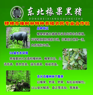 东北橡果黑猪养殖基地坐落在茂密的大森林中,绿草丛生、环境优美、无工业污染。穆棱橡树林基地采用圈养散养结合的养殖方式。猪的运动量和活动空间极大,圈养期间以玉米、米糠、萝卜、菜叶为主食,野外...