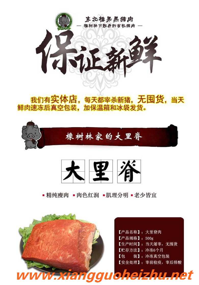 【大里脊500g】橡果黑猪肉东北特产绿色有机农家散养土猪新鲜塑封
